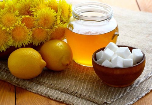 Основні компоненти, які нам потрібні, завжди знаходяться у нас під рукою: квіти кульбаби, чиста вода і цукровий пісок.