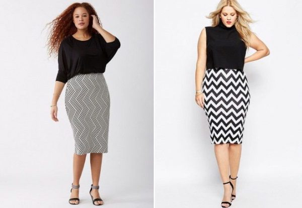 Для більш неформальних заходів підійде спідниця олівець з принтом ефекту подряпин. Так як сам принт виконаний у довільній послідовності, нерівності на тілі у вигляді виступаючого живота будуть абсолютно непомітні. Це стосується не тільки принту з ефектом подряпин. Будь-які довільні елементи на спідниці олівці чудово приховають парочку кілограмів, звисаючі боки. При виборі не забувайте про завищену талію. Саме вона відіграє в цій моделі одну з вирішальних ролей.