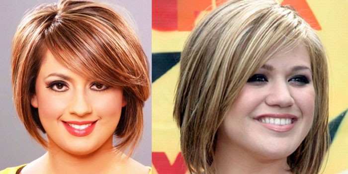 Власницям м’яких, круглих рис підійдуть зачіски, які візуально витягують і підкреслюють лінії овалу, надають чіткість і виразність. Модну коротку стрижку на кругле обличчя потрібно вибирати з довгою чубчиком, звивистими лініями зрізу. Підійде каре, з подовженням до передньої частини, з пасмами інших кольорів, боб з каскадними пасмами або локонами різної довжини. В укладанні повинні переважати довгі скошені лінії, контрастність і квадратні кути. Завдання майстра: