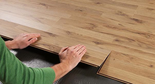 Спочатку набувають ламінат, технологія монтажу якого не вимагає приклеювання підкладки до бетонної основи. Після цього виконують наступні роботи: