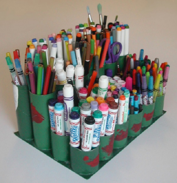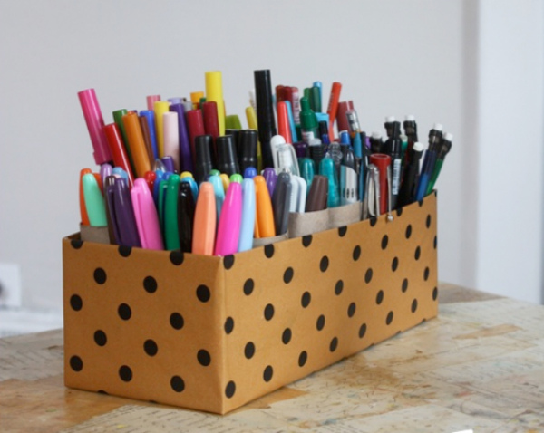 Ось, мабуть, самий простий органайзер для канцтоварів: просто встав втулки в картонну коробку і розсортуй приналежності по осередках!
