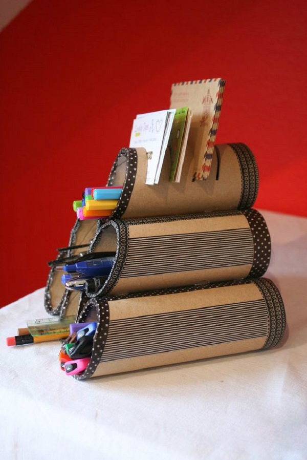 В першу чергу картонна гільза від туалетного паперу — це благодатний матеріал для виготовлення різних органайзерів.