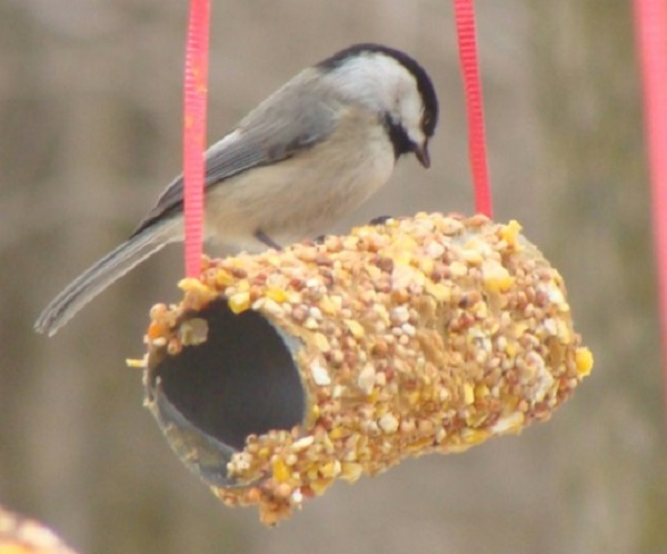 Подбай про пернатих друзів, змайструвавши просту годівницю. Вымажь втулку цукровим сиропом або медом і обкачати її в зернятках.