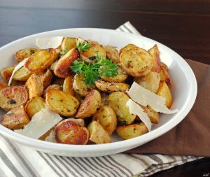 Пропонуємо пригостити гостей «Пахучим запеченою картоплею». Тим більше, що рецепт дуже просто. Отже: приготували 8 великих картоплин, білок двох яєць, сухі спеції і оливкове масло. Картоплю ретельно миємо й ріжемо часточками разом з шкіркою. Збиті до повітряної піни білки з’єднуємо з картопляними скибочками, перемішуємо і рясно посипаємо спеціями. Знову перемішуємо. Змастіть деко оливковою олією і рівномірно розподіліть по ньому часточки картоплі в спеціях. Запікайте картоплю в духовці, розігрітій до 220 ?С протягом півгодини, помішуючи кожні 7 хвилин.