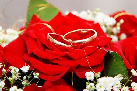 - Гра «Троянда». Заздалегідь приготувати пару паперових троянд з 10 пелюстками – стільки, скільки прожито разом років. Подружжя по черзі відривають по пелюстці зі свого квітки і вимовляють один одному компліменти або називають ті якості, які подобаються в партнері. Квітки можна заздалегідь прикріпити до піджака нареченого і сукні нареченої на рожеве весілля.