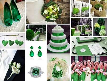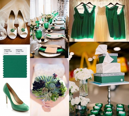Так як смарагдовий колір відмінно поєднується з золотим, бежевим і білим, бажано, щоб весілля була оформлена в даних колірних палітрах.