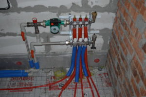 • Для спрощення процедури має сенс купити готовий до установки колектор, в комплект якого входить запірна арматура. Ці вузли, які будуть змонтовані на висновки теплих підлог, радіаторів опалення та інших споживачів тепла. Під час експлуатації теплової мережі, домовласник отримає можливість відключення тих чи інших контурів опалювальної мережі, але при цьому частина контурів буде продовжувати роботу.