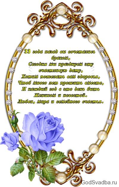 Гостям необхідно продумати своє привітання. Зв’язати його з 33-річчям спільного життя. Подарунки потрібно робити з сенсом, символічні. Подружжю рекомендується подарувати один одному кам’яні прикраси. Необхідно знайти інформацію, який камінь підходить для чоловіка, а який для дружини за датою народження. 33 роки спільного життя передбачає, що у людей за плечима багато щасливих років, є діти та онуки.