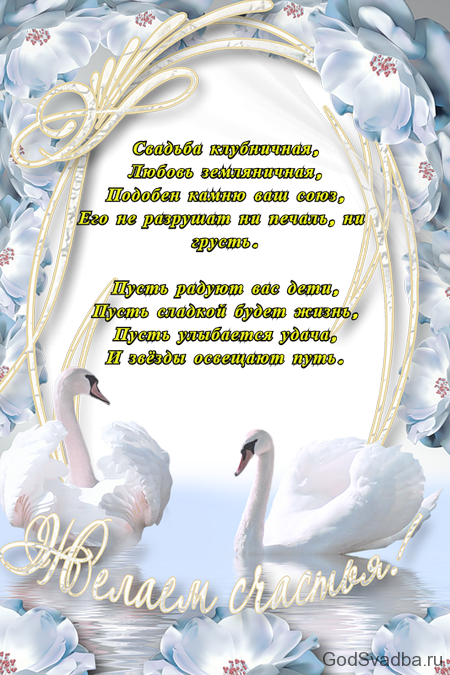 Якщо чоловік з дружиною відзначають кам’яну весілля, то чоловік може зробити дружині подарунок у вигляді кошика з полуницею, а також прочитати їй короткі вірші. Короткі вірші, власного виробництва порадують будь-яку жінку. Також можна прочитати їй вірш улюбленого поета. Річниця весілля прекрасний привід подарувати прикраси з натурального каменю. Батькам можна зробити презент з натурального каменю.
