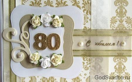 Дубове весілля (80 років) – символ надійності, вірності. Заздалегідь замовте написати портрет ювілярів під розкидистим дубом – нехай вони будуть красиві і молоді. Привітання можна оформити у вигляді дубових листочків, розвішаних по стінах або попросити молодших родичів зробити своїми руками дерево і повісити на нього вітання.