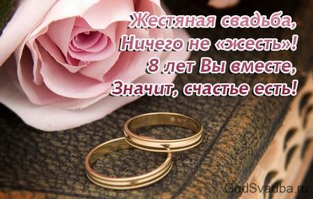 Жерсть має міцну і гнучку структуру, точно так, як сім’я, яка прожила разом 8 років. Тож ця річниця іменується Жерстяної. Її прийнято відзначати велично і весело, даруючи подружжю прикольні, щирі вітання та подарунки, пов’язані з виробами з жерсті.