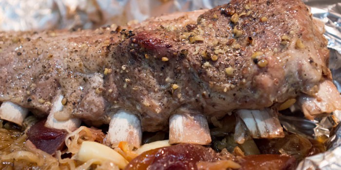 - для пікантності смаку разом з ребрами можна запекти брусницю, журавлину або кисле яблуко.