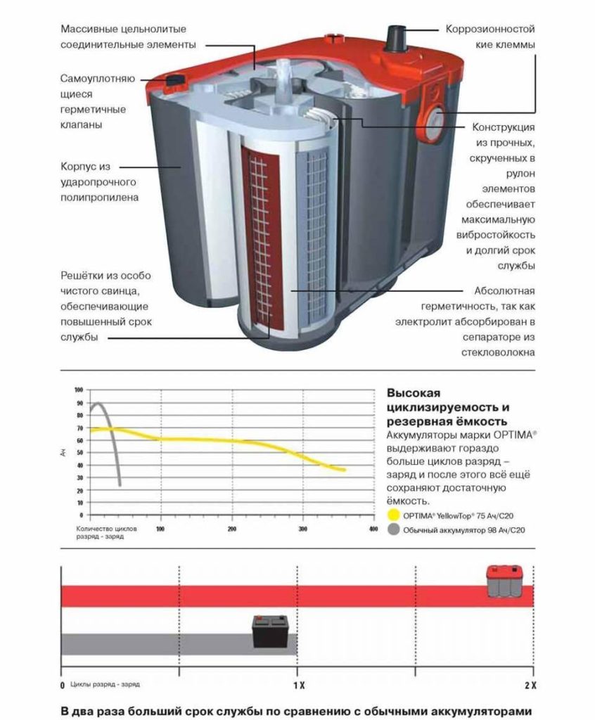 - Optima — дітище американських виробників, яке відоме хорошою стабільністю роботи при низьких температурах. Акумуляторні батареї Optima порадували своєю гарним захистом від саморозряду, зносостійкістю, міцністю до механічних впливів. Однак цей вид приладів на думку експертів має завищену вартість.
