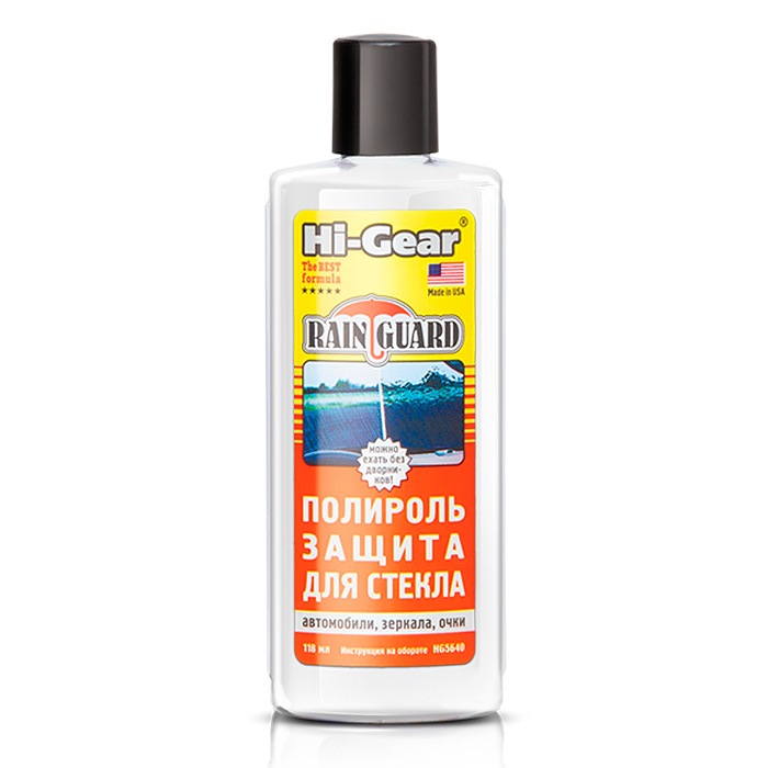 - Hi-Gear HG5640. Кращий поліроль для відновлення фар та скла. Сприяє швидкому скочування бруду і води з поверхні на малих і середніх швидкостях, залишаючи скло чистим. Використовується для будь-яких видів стекол, включаючи очки. Позбавляє водія від необхідності включати двірники, але характеризується неприємним спиртовим запахом;