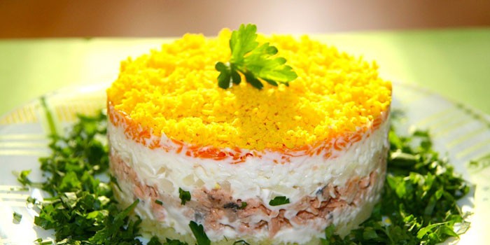 Традиційний для російських святкових застіль рибний салат мімоза користується популярністю вже в декількох поколінь гурманів, оскільки чудово поєднує в собі ситність і легкість. Крім того, таке блюдо виглядає ошатно завдяки верхньому шару, оформленим тертим сиром і подрібненим яєчним жовтком, а ніжність смаку забезпечує білок. Класичний рецепт передбачає використання картоплі, однак деякі господині вважають за краще готувати мімозу з рисом.