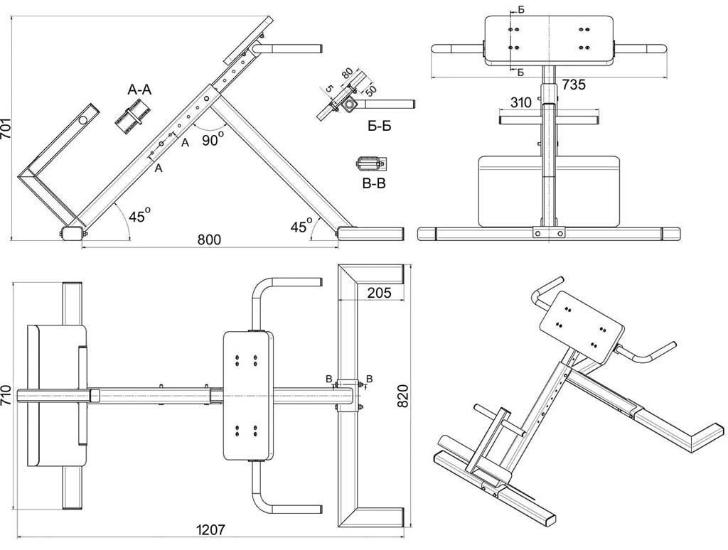 Римський стілець являє собою тренажер, призначення якого – надання рельєфу м’язів черевної порожнини, нижньої частини спини, зовнішньої і внутрішньої поверхні стегон, а також сідничним м’язам. Сучасний варіант складається з лави, розташованої під ухилом і оснащеної валиками, які дозволяють зручно зафіксувати ноги. Більш дорогі моделі дають можливість максимально підлаштувати снаряд під себе за рахунок регулювання нахилу лави, а також виконувати притягання ніг до корпусу. Розглянемо як зробити римський стілець своїми руками: креслення і розміри конструкції.