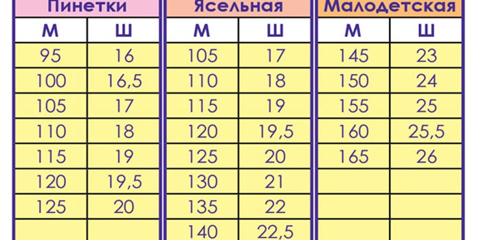 Батькам у питанні вибору черевичок для малюка допоможе спеціальна таблиця. В ній містяться дані, що допомагають визначити приблизний розмір за віком дитини, однак при цьому потрібно орієнтуватися на форму ніжки свого чада. Велику роль для комфортної ходьби грають правильно підібрана повнота і висота підйому моделі. Допоможе визначити розмір ноги дитини в сантиметрах – таблиця, наведена нижче.