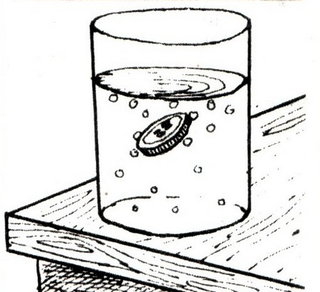 Потрібен склянку сильно газованої води і легка ґудзик. Ведучий опускає гудзик на дно склянки і починає виконувати магічні паси, наказуючи гудзику рухатися вгору до його руці. Після того, як пуговка підніметься, фокусник просить її вирушати назад вниз. Ніякої складності у фокусі немає, ґудзик піднімається за рахунок того, що навколо неї збираються бульбашки вуглекислого газу, і опускається, коли пухирці лопаються.