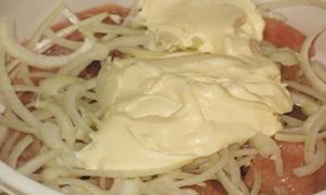 Перш ніж додати підготовлені продукти в тару, необхідно їх трохи потиснути, тим самим вони дадуть швидше сік, а значить процес маринування буде не довгим.
