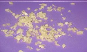 Часник очистити від верхніх сухого листя, відрізати неїстівні частини у вигляді прикріплення кореневої системи. Нашаткувати підготовлені зубчики на тертці дрібного розміру. Використовуючи його в маринаді курка набуває незвичайний смак і аромат.