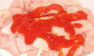 Розморожену курку обмити водою і викласти на паперовий рушник для вбирання зайвої рідини. Потім розрізати її на порційні шматки однакового розміру, якщо ви самі цього хочете. Краще всього набувати кетчуп вже з доданими спеціями. Якщо ж використовується томатна паста, то нічого страшного не станеться, просто введи більше спецій і все. У невелику каструлю викладаємо підготовлений томатний продукт і вливаємо в нього пісне масло і перемішуємо.