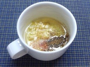 Наступна дія — приготування маринаду для свинячого шашлику на шпажках. Змішуємо в невелике глибокій тарілці попередньо підготовлені спеції, сік, вичавлений з натурального лимона, очищені часничок нашатковану на дрібній тертці, чисту кип’ячену воду, пісок цукровий і маслечко. Перемішати все до повного розчинення сипучих компонентів.