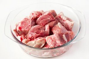 У першу чергу потрібно підготувати м’якоть м’яса до використання. Для цього охолоджуємо її в теплому приміщенні, розрізаємо на великі кубики, попередньо зачистивши його від всіх жил і плівок.
