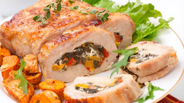 - М’ясні рулети. Їх можна готувати з курки або свинини. М’ясо відбивається і маринується в майонезі зі спеціями, всередину можна покласти практично всі, від корейської морквини до чорносливу. Рулет трохи обсмажується на сковороді і доводиться так готовності в духовці.