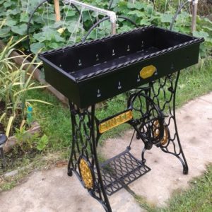 Найпопулярніше рішення – використовувати станину швейної машини в якості підстави для всіляких столів. Столи можуть відрізнятися за розміром і призначенням. Новий предмет меблів можна розташувати в квартирі, підійде він і для альтанки в саду. Трохи доопрацювавши конструкцію станини, його можна перетворити на підставу для умивальника або шафка для прикрас. Закріпивши жаровню, отримаємо оригінальний мангал на міцних стійких ніжках. А поставивши герметичний ящик-кашпо, прикрашаємо оселю або сад в літній час оригінальної клумбою.