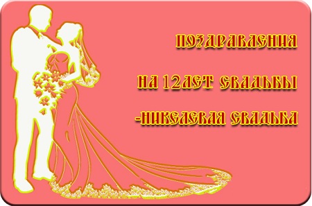 Двенадцатилетие спільного життя подружжя називається нікелевої весіллям. Закохані, які пронесли через роки свою любов і вірність один одному, вважають свій шлюб міцним і витривалим. Звичайно, у житті подружжя були і розбіжності, але якщо протягом 12-ти років вони не втратили щирі почуття один до одного, то така обставина варто захоплення оточуючих і теплих слів привітання.