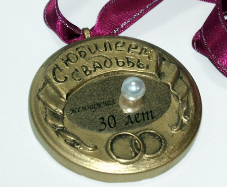Символічні подарунки теж повинні бути присутніми. Такими вважаються вироби з перлів. Для дружини це може бути браслет, сережки, намисто, а для чоловіка — перлинні запонки або затискачі для краватки, годинники з перлами.