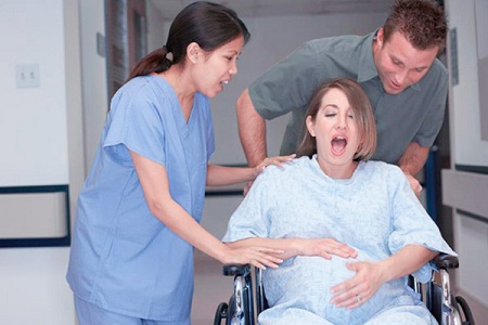 У цій ситуації чоловік може масажувати жінці спину, тим самим знімаючи навантаження на неї, приносити воду, допомагати пересуватися по родзалу (якщо стоїть крапельниця, робити це самостійно незручно), а в разі необхідності покликати лікаря.