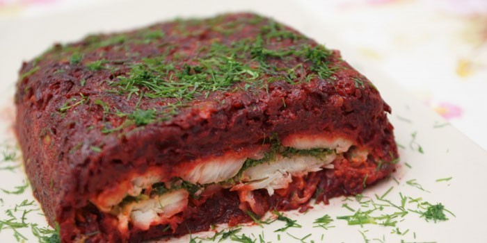 Це блюдо дуже схоже на відомий однойменний салат, але тут не використовується майонез (для ніжності взята сметана). Запечений судак під шубою в духовці готується з буряком, але допускається її заміна на картоплю. Зелених стрілок цибулі можна додати пучки кропу, петрушки, а саме рибне блюдо подати на салатних листках з гарніром з печеної зеленого горошку.