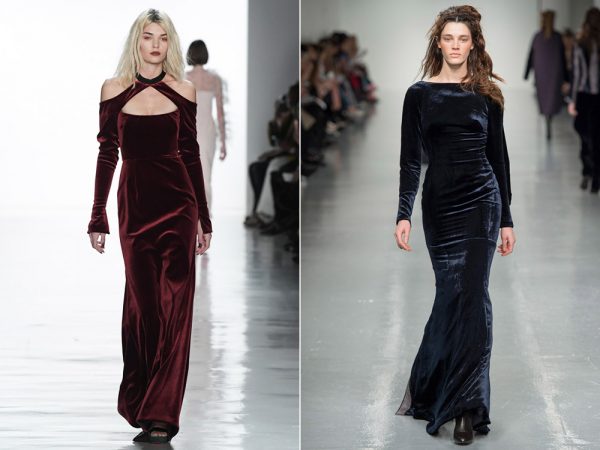 - Оксамитові вбрання. Тканина виглядає багато, підходить для урочистого заходу. У такому вбранні кожна дівчина зможе відчути себе справжньою королевою.
