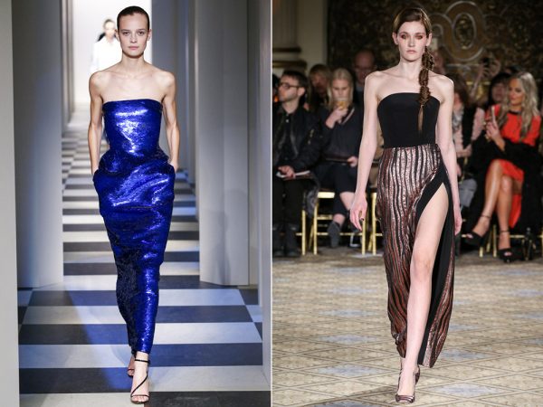 - Асиметрія. Асиметричні деталі роблять наряд оригінальним. На модних показах були представлені моделі з одним рукавом, плаття зі шлейфом. При правильному виборі моделі можна приховати недоліки фігури і підкреслити її гідності. Незвичайний крій привертає загальну увагу, допомагає виділитися в натовпі.