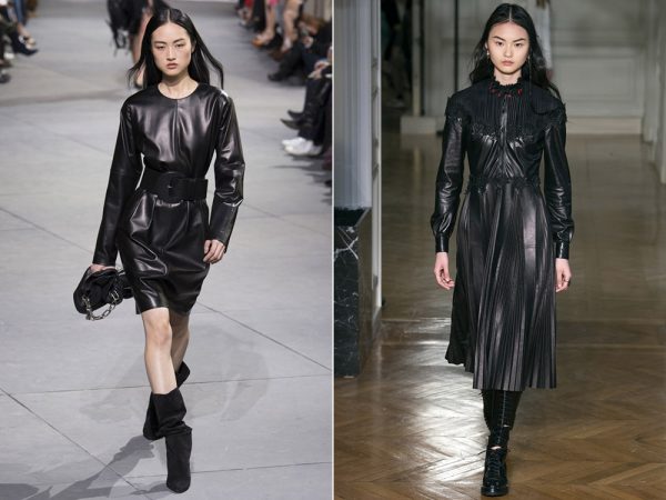 Сукні можуть бути як шкіряними, так і містити окремі елементи зі шкіри. Чорна тканина виглядає витончено. Щоб виділитися в натовпі, можна вибирати і інші відтінки матеріалу.