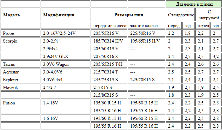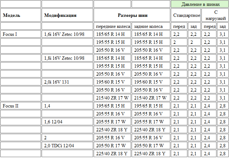 Тиск в шинах Ford Focus 1 і Ford Focus 2