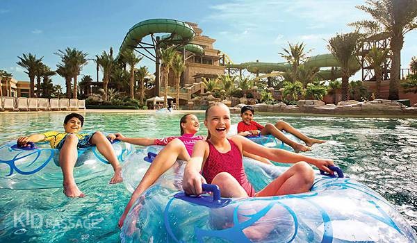 Найбільший на Близькому Сході аквапарк Aquaventure в готелі «Атлантіс» справляє враження навіть на завсідників водних атракціонів. Нечасто зустрінеш такий набір крутих і швидкісних спусків, вже одна назва яких змушує тремтіти: «Помста Посейдона», «Акваконда», «Стрибок у невідоме»… Тут є вертикальні капсульні гірки і спуск, проходить крізь акваріум з хижими рибами, річка з бурхливою течією і басейн з штучними хвилями. Втім, і для релаксу в аквапарку створені всі умови. І вже точно не занудьгують діти: їх чекає зона розваг Splashers, де будь-яка гра перетвориться в пригоду.