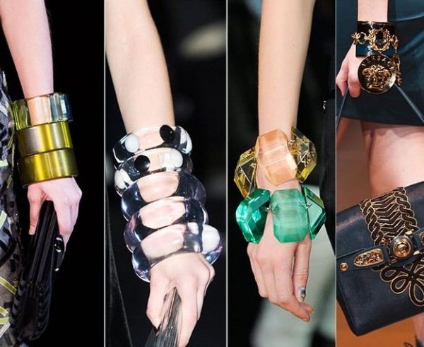Кільця і браслети можуть бути великими, масивними і оригінальними. При цьому бажано вибирати прикраси футуристичного стилю, який передбачає застосування великих квітів і незвичайних каменів.