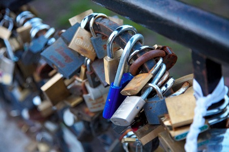 Весільні обряди з замком з’явилися не так давно, зате швидко стали популярними серед молодят. Суть в тому, що в день одруження пара вішає на спеціально відведене для цього місце замочок з пам’ятної гравіюванням (це можуть бути імена закоханих, дата весілля, клятва вірності і т. д). Обряд символізує міцність сімейних уз і їх непорушність. У давнину прототипом такого дійства ставало пов’язування стрічок на дерева. Замки стали застосовуватися недавно.