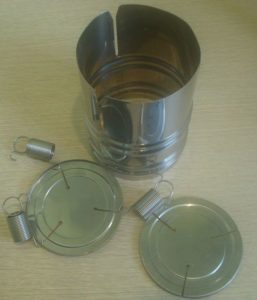 - Тепер робимо отвори внизу банки для наших пружин з нержавійки (1 мм). Перегинаємо і затискаємо пружини в отворах;