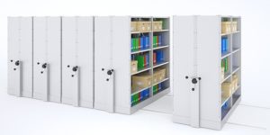 Такі стелажні системи широко застосовуються при будівництві архівів і складів. Переміщення таких стелажів може здійснюватися вручну або автоматично, за допомогою спеціальних механізмів. Система дуже зручна і ефективна, але, як і гравітаційні стелажі, досить дорога.