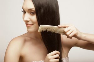 Потім потрібно добре розчесати волосся по всій довжині. Та наносити олію на всю довжину волосся починаючи з коренів. Для цього потрібно небагато суміші вилити на долоню і розподілити по обох долонь злегка розтираючи і прогріваючи масло. Потім втирающими м’якими рухами наносити на коріння волосся, ніби причесывая їх пальцями. Далі нанести на всю довжину і особливо добре промазати кінчики, так як зазвичай саме вони вимагають відновлення.