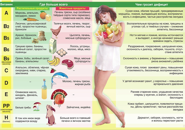 - Група B. беруть участь у творенні крові, займається регулюванням роботи нервової системи. Так само приймає важливу участь в метаболізмі заліза. За допомогою цієї групи вітамінів відбувається налагоджена робота органів і печінки. Важливими вважають такі вітаміни В12, В6, В2.