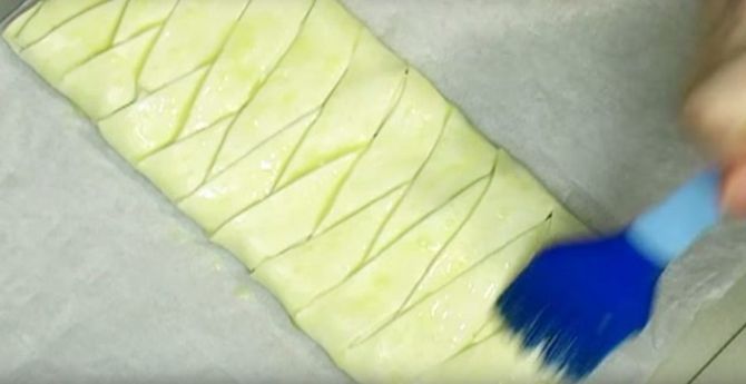 Рівномірно змаж отриманий пиріжок яйцем.