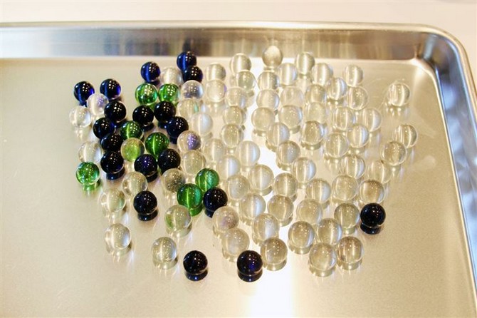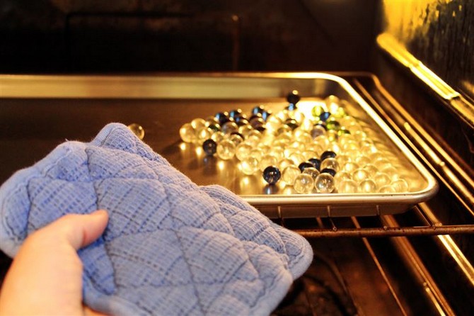 Розкладіть скляні кульки на деко і відправте в духовку, розігріту до 250 °С на 20 хвилин.