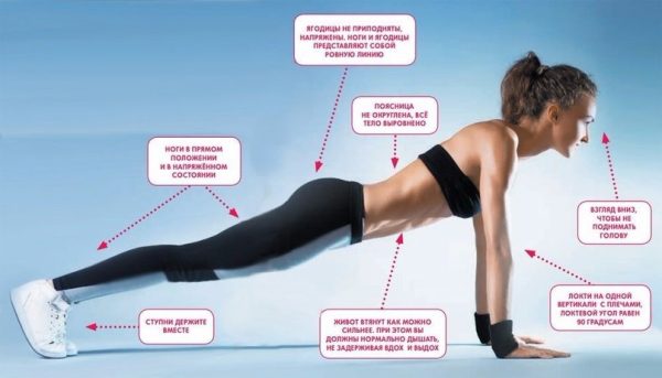 Спочатку живіт просто трохи втягують, а потім намагаються наблизити його до ребер, але затримувати дихання в даному випадку суворо заборонено, затримка дихання може позначитися на самопочутті жінки під час виконання планки.