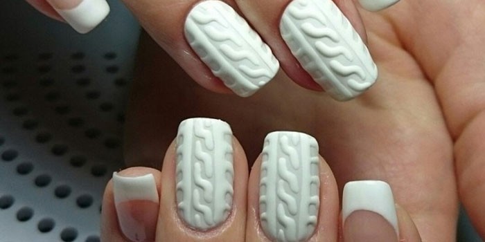 Оригінальна техніка в світі нігтьового дизайну з’явилася недавно, але вже встигла завоювати популярність багатьох модниць. Орнаменти, що нагадують плетіння на в’язаному одязі, можуть бути різноманітної форми. Все залежить від вашої уяви. Об’ємні малюнки краще робити на коротких нігтях – так манікюр виглядає акуратніше.