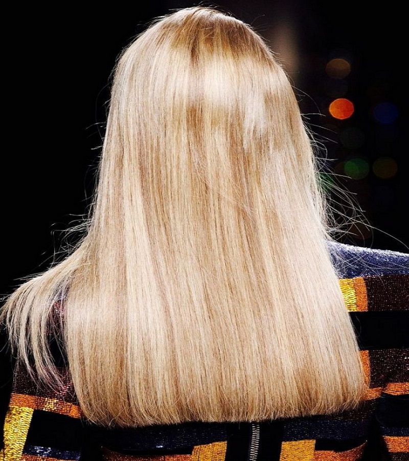Кардинально інший тренд — гладке волосся з ідеально рівним зрізом. Такий зріз додає вишуканість як довгим, так і коротким волоссям. Цей ефект досягається за допомогою машинки. Також подібна процедура використовується як уходовая: волосся виглядають більш живими і об’ємними. Мабуть, така зачіска не підійде жінкам з дуже рідкою чуприною, привабливо вона буде виглядати лише на густих, прямих волоссі.