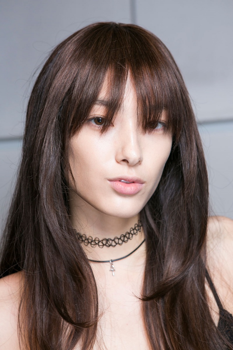 Пряма чубчик стає просто хітом сезону! Вона не обов’язково повинна бути густою і до брів. Можна просто залишити коротші пасма біля обличчя. Зверни увагу: ширина будь чубчика повинна бути обмежена зовнішніми куточками очей, інакше твоє обличчя буде здаватися неприродно широким. Також чубчика не йдуть дівчатам з дуже вузьким чолом.